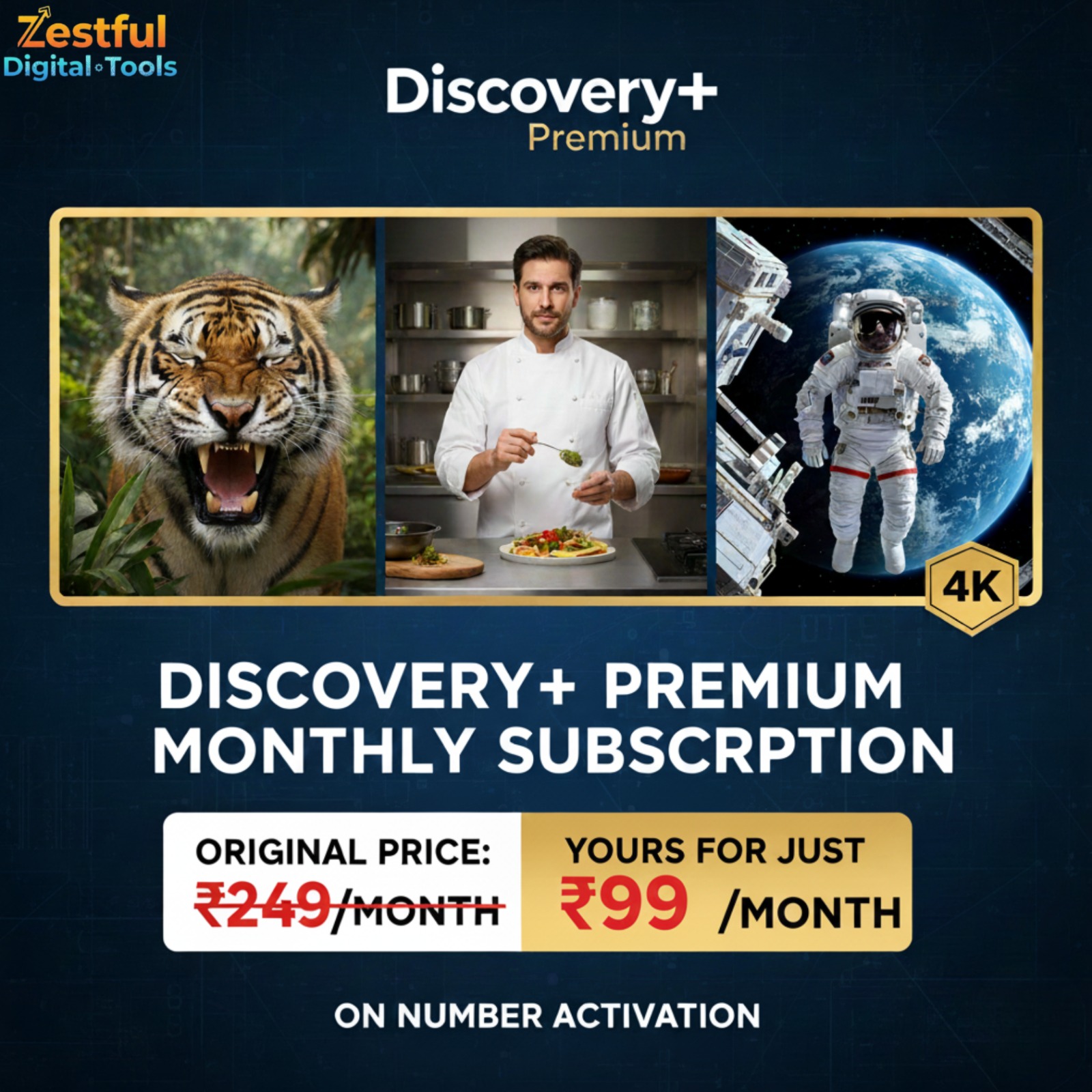 Explore a world of knowledge, adventure, and real-life entertainment with the Discovery+ Premium Monthly Subscription, activated directly on your mobile number for instant and hassle-free access.