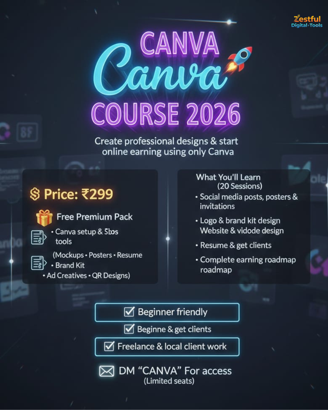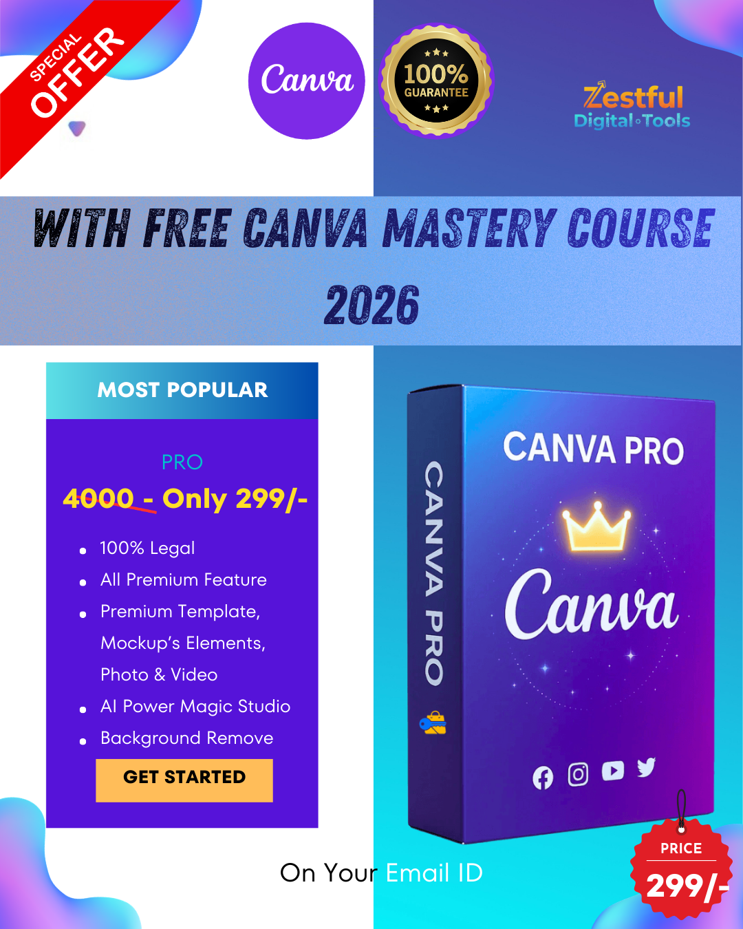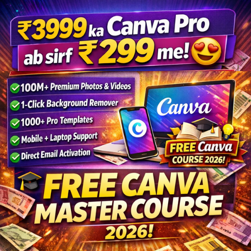 Create stunning, professional designs and start your online earning journey with Canva Pro — now available at an unbeatable price. Whether you’re a student, freelancer, content creator, or business owner, this all-in-one package gives you premium tools + step-by-step training to design like a pro.